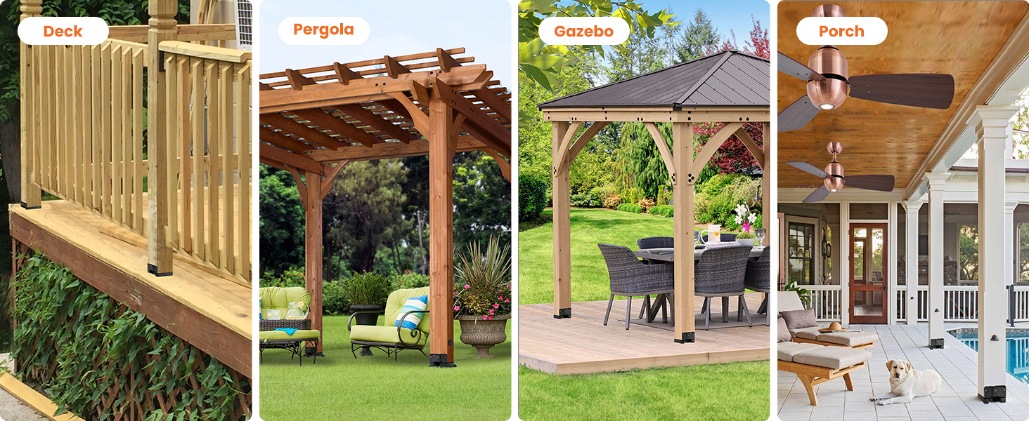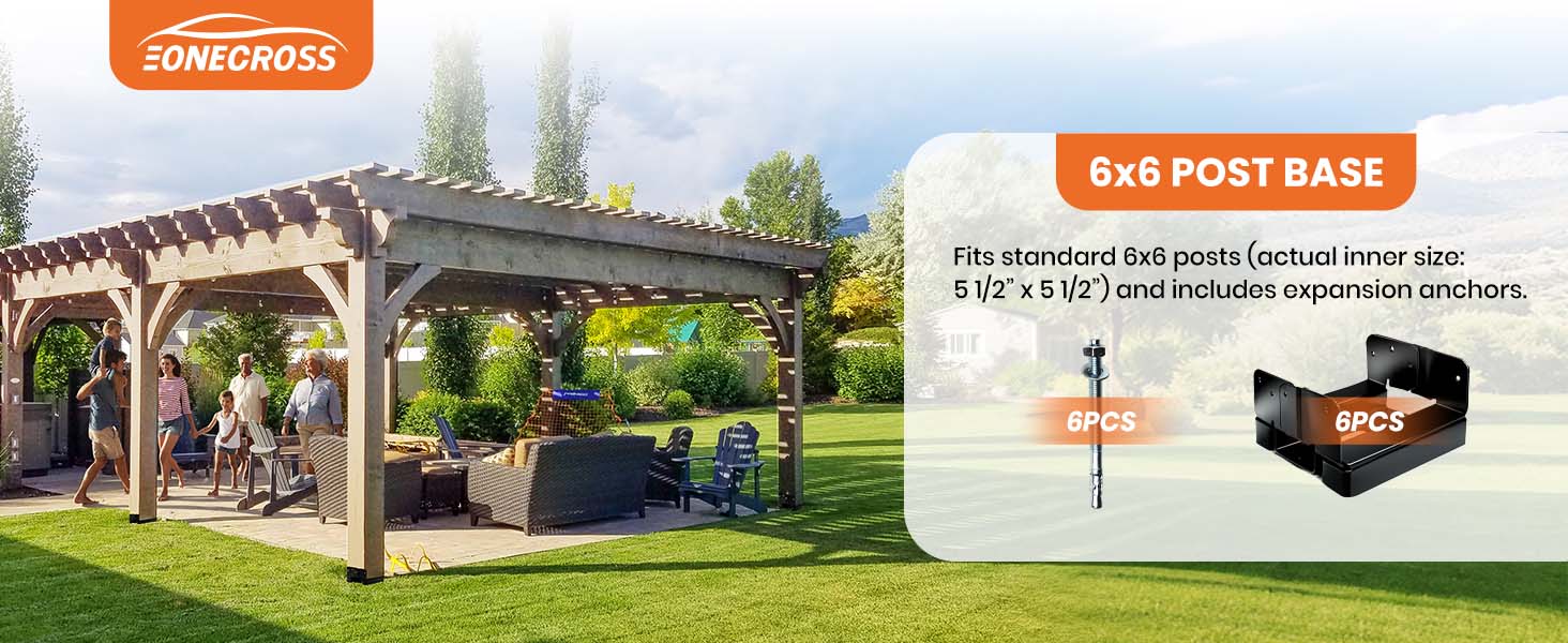• 𝐅𝐢𝐭 𝟓.𝟓” 𝐱 𝟓.𝟓” 𝐏𝐨𝐬𝐭: Our 6×6 post base fits standard 6×6 posts (actual inner size: 5.5” x 5.5”).The deck post base is perfect for a range of spaces,indluding decks,pergolas,patios,gazebos,proches.