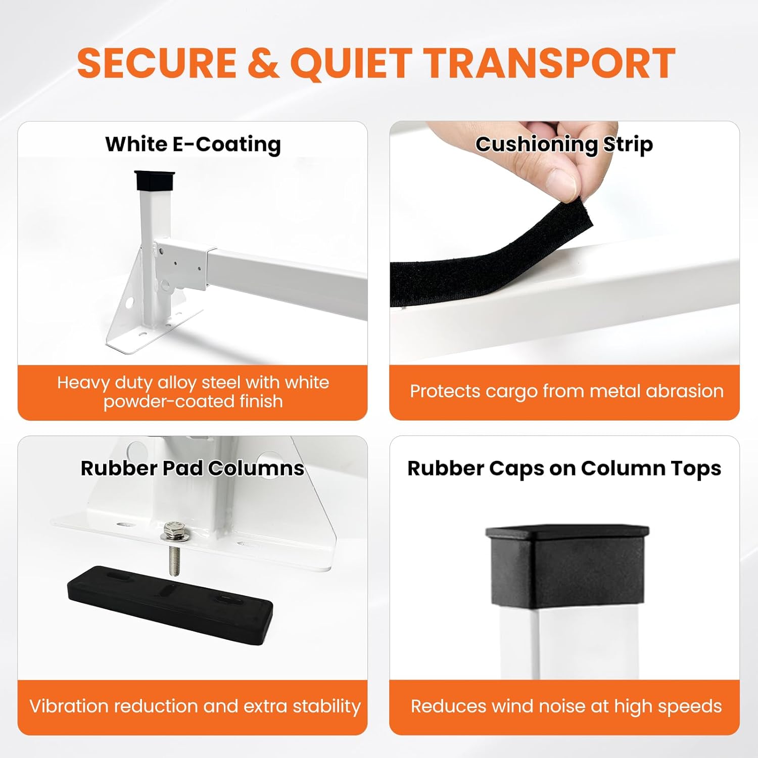 - 【𝐔𝐬𝐞𝐫-𝐟𝐫𝐢𝐞𝐧𝐝𝐥𝐲 𝐝𝐞𝐬𝐢𝐠𝐧】.Rubber pads on installation columns reduce driving vibration, while EVA foam on crossbars improves grip and prevents wear. Adjustable base maintains clearance, protecting your roof rack for van and vehicle finish from damage and extending durability.