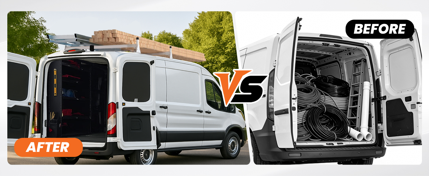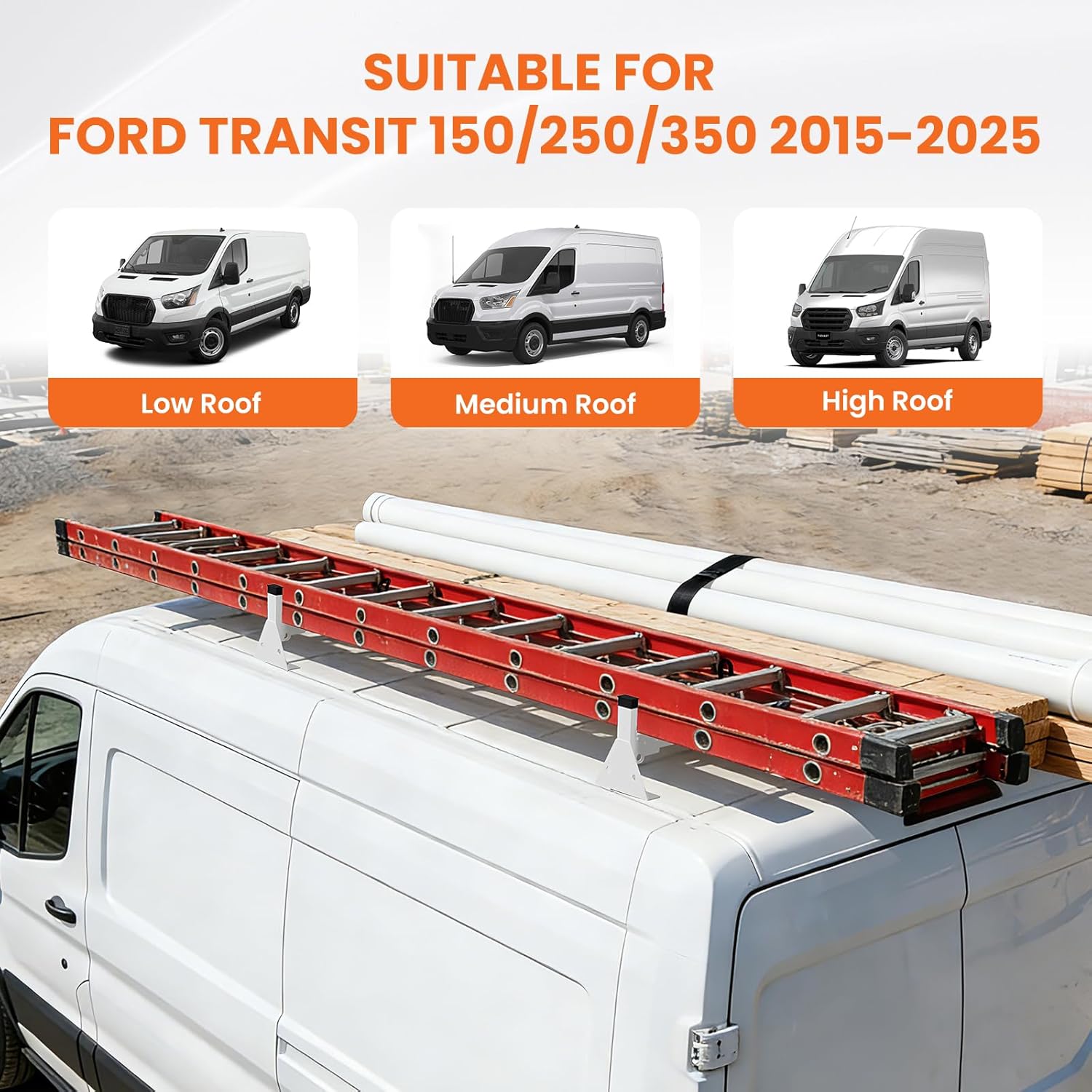 - 【𝐄𝐚𝐬𝐲 𝐈𝐧𝐬𝐭𝐚𝐥𝐥𝐚𝐭𝐢𝐨𝐧 & 𝐖𝐢𝐝𝐞 𝐂𝐨𝐦𝐩𝐚𝐭𝐢𝐛𝐢𝐥𝐢𝐭𝐲】.This van ladder rack is compatible with 2015–2025 Ford Transit 150/250/350 models with low, mid, high roofs. It installs easily using factory mounting points—no drilling required. Adjustable crossbars with pre-drilled holes ensure a perfect fit and hassle-free setup.