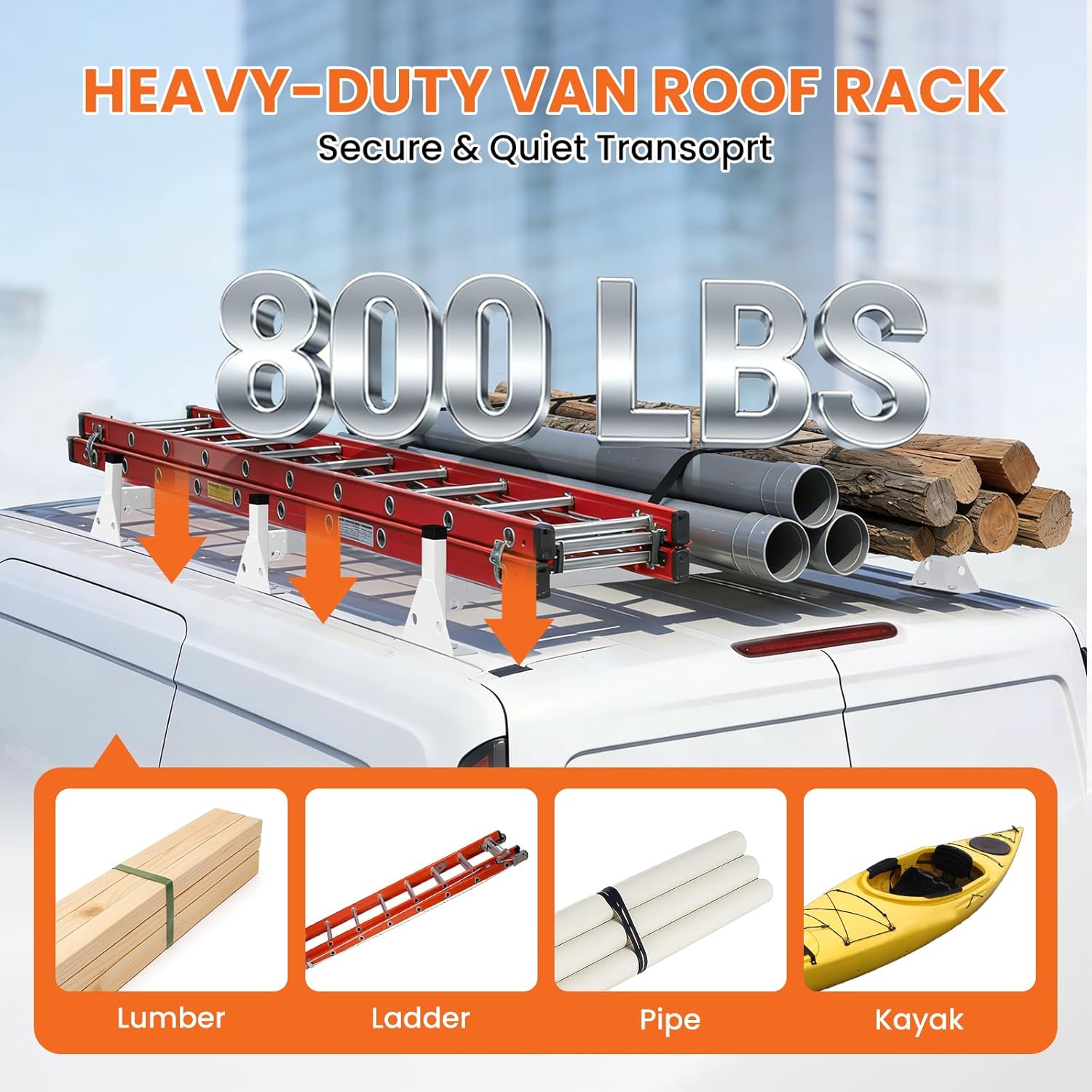 Whether you’re an electrician, plumber, HVAC technician, contractor, or delivery professional, this heavy-duty roof rack system provides dependable cargo support for daily commercial demands.