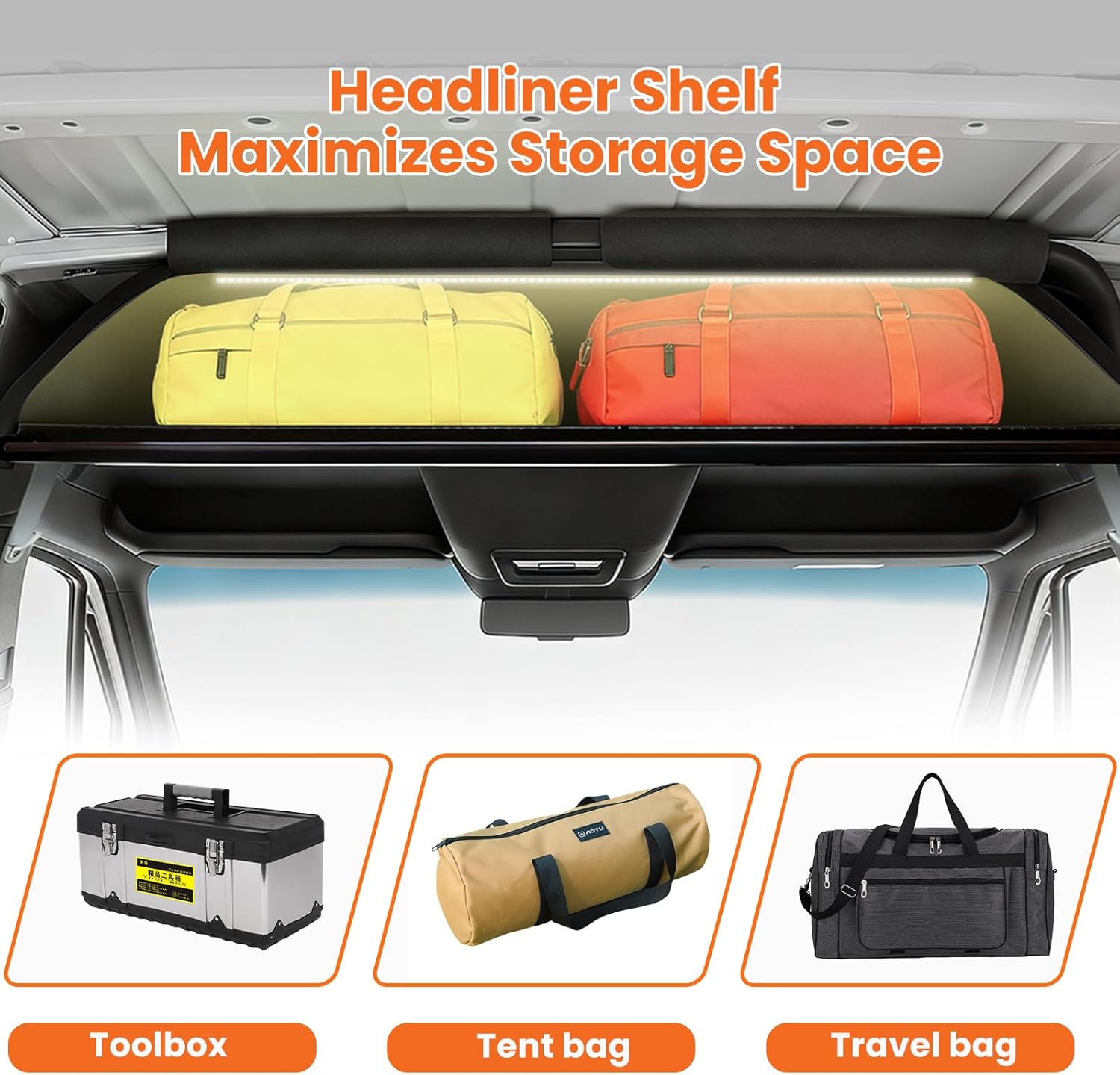 The Sprinter van headliner shelf is a versatile interior upgrade suitable for many uses.