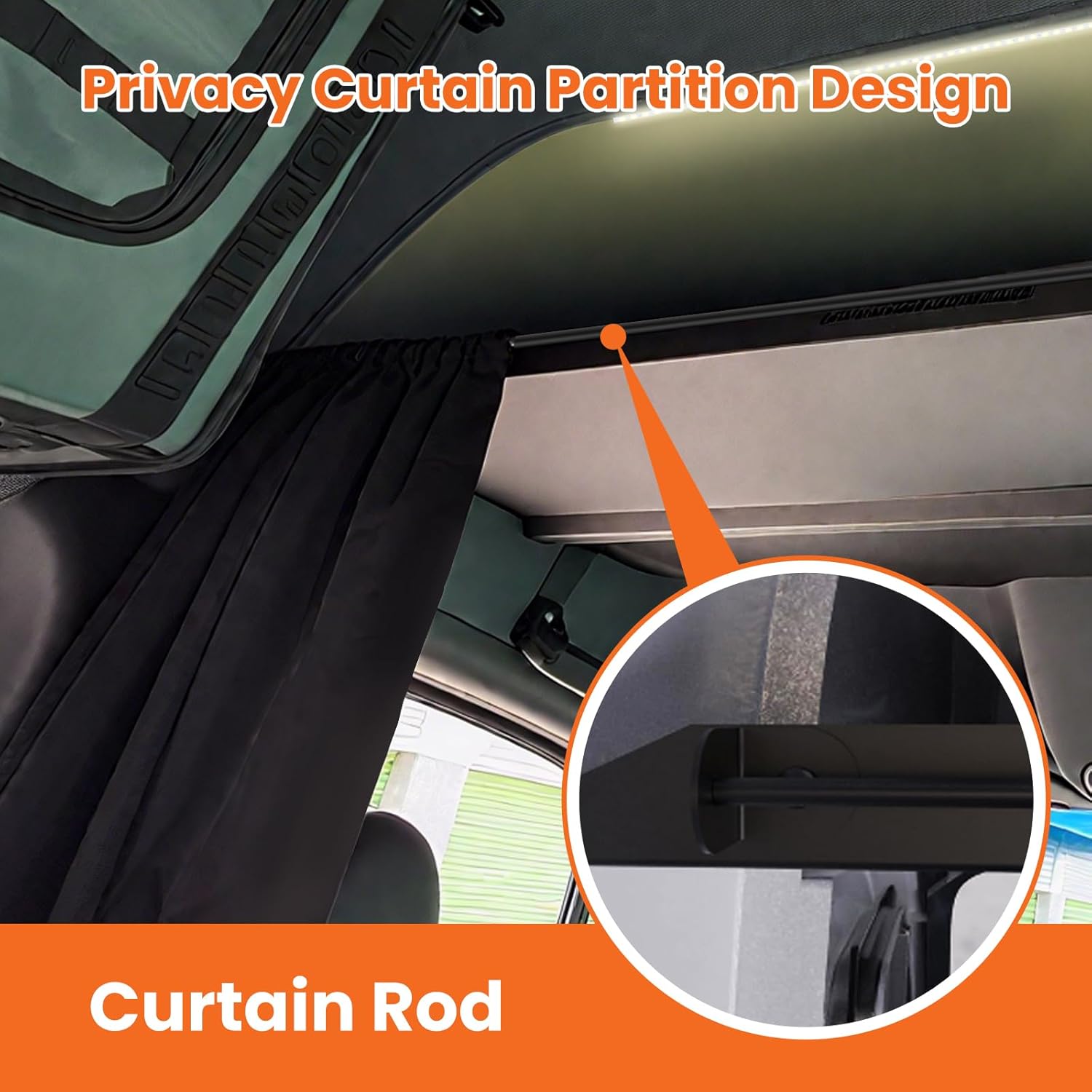 The curtain rod allows you to customize the interior setup while maintaining a comfortable travel environment.